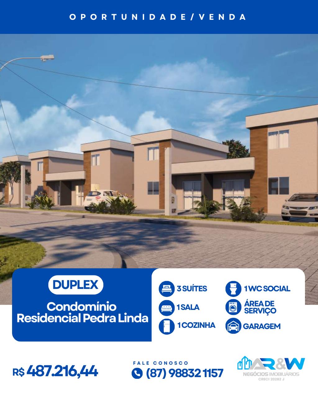 Duplex sendo três suítes I Na Planta I Condomínio Residencial Pedra Linda I Petrolina