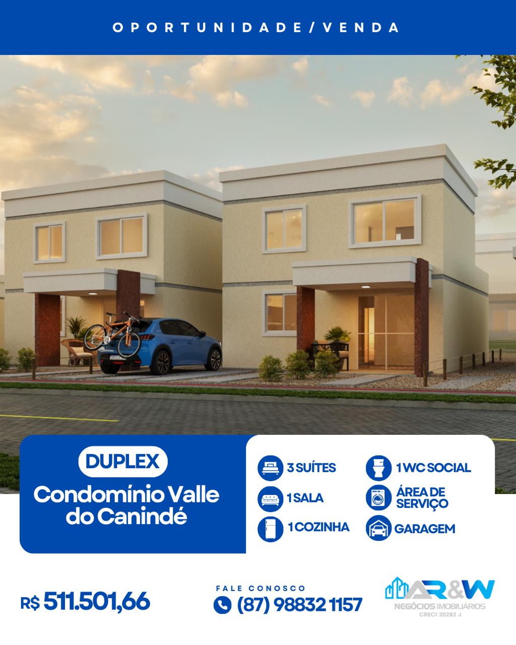Duplex sendo três suítes I Na Planta I Condomínio Valle do Canindé I Petrolina